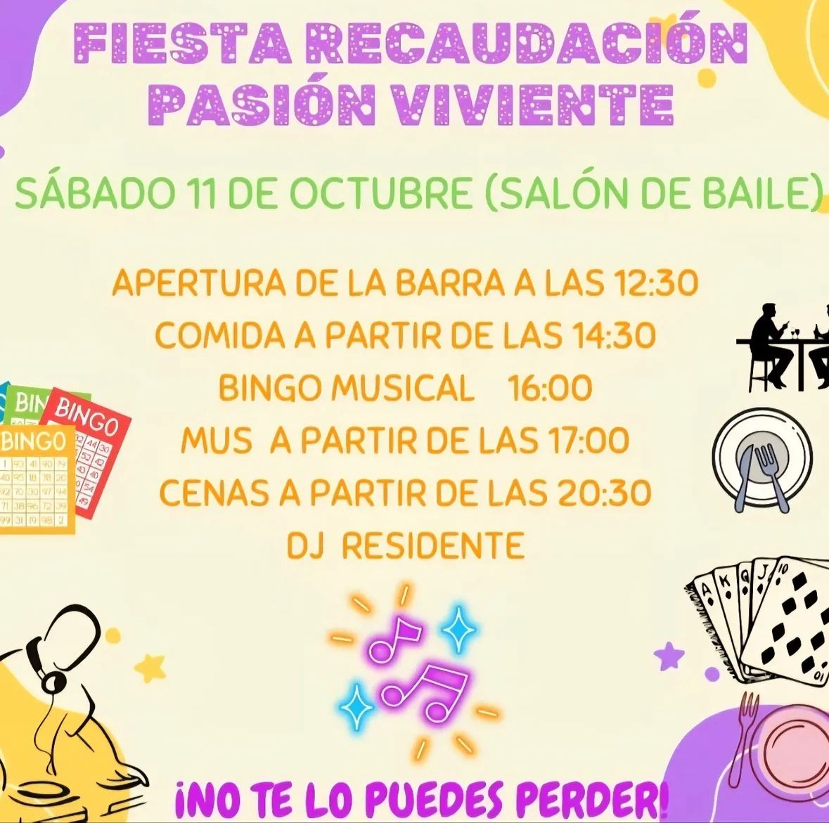 El próximo sábado 11 de octubre, el Salón de Baile acogerá una animada jornada festiva organizada por el grupo de la Pasión Viviente, con el objetivo de recaudar fondos para su próxima representación.