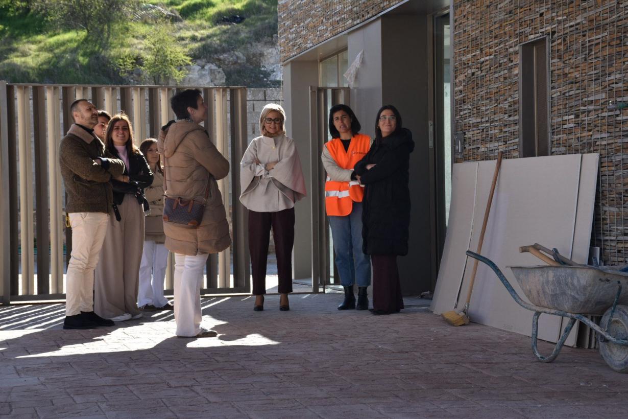 Marian López ha estado acompañada por la alcaldesa de la localidad, María Roldán; el delegado provincial de Sanidad, José María Pastor; la diputada provincial de Patrimonio, Ferias y Turismo y concejala en el municipio, Mayte Megías; y la dipitda regional Paloma Jiménez; así como por la directora adjunta de la obra, Carla Romero, con quienes ha recorrido las instalaciones para comprobar el avance de los trabajos.