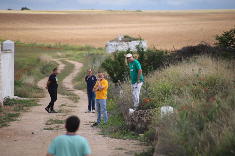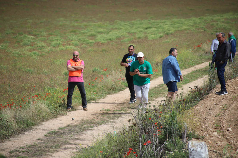 Otro de los juegos típicos de la zona es el boleo, donde los participantes tenían que lanzar la bola lo más lejos posible. Desde la parte trasera de la Ermita hasta el Calvario, los representantes de cada pueblo se disputaron la victoria.