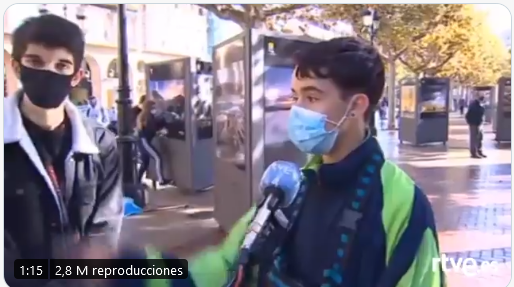 Pablo Alcaide es un joven de 16 años que vive en Logroño. Este domingo por la mañana se ha levantado temprano y ha quedado con sus amigos para limpiar los destrozos que la noche pasada dejaron tras de sí unos manifestantes en contra de las restricciones por la pandemia.