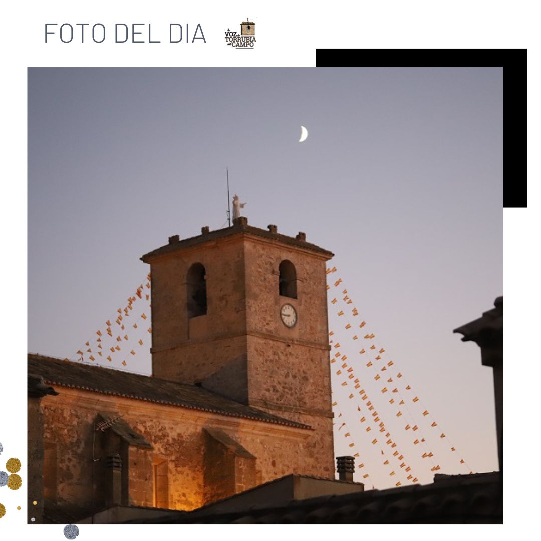 Comenzamos la temporada con esta imagen de la torre de la Iglesia aún engalanada para las fiestas