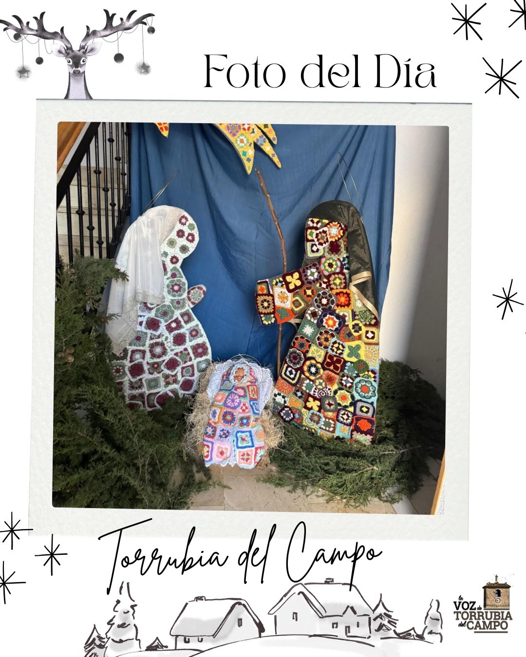 El belén de ganchillo elaborado por el taller de la Biblioteca Municipal luce así de bonito