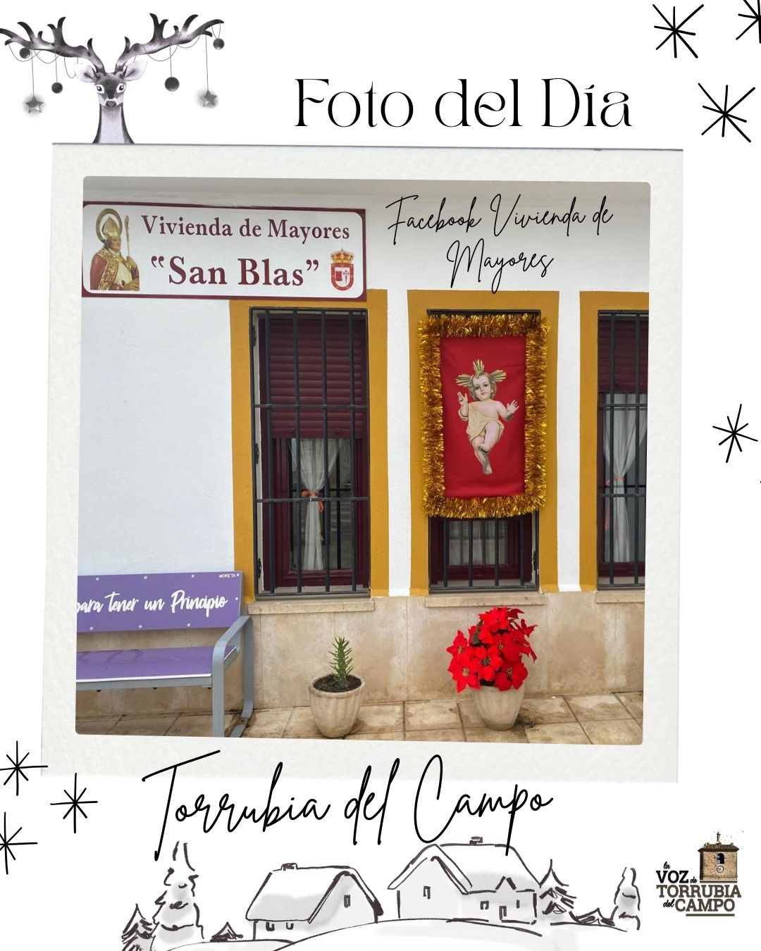 Así de navideña luce la fachada de la Vivienda Tutelada de Mayores
