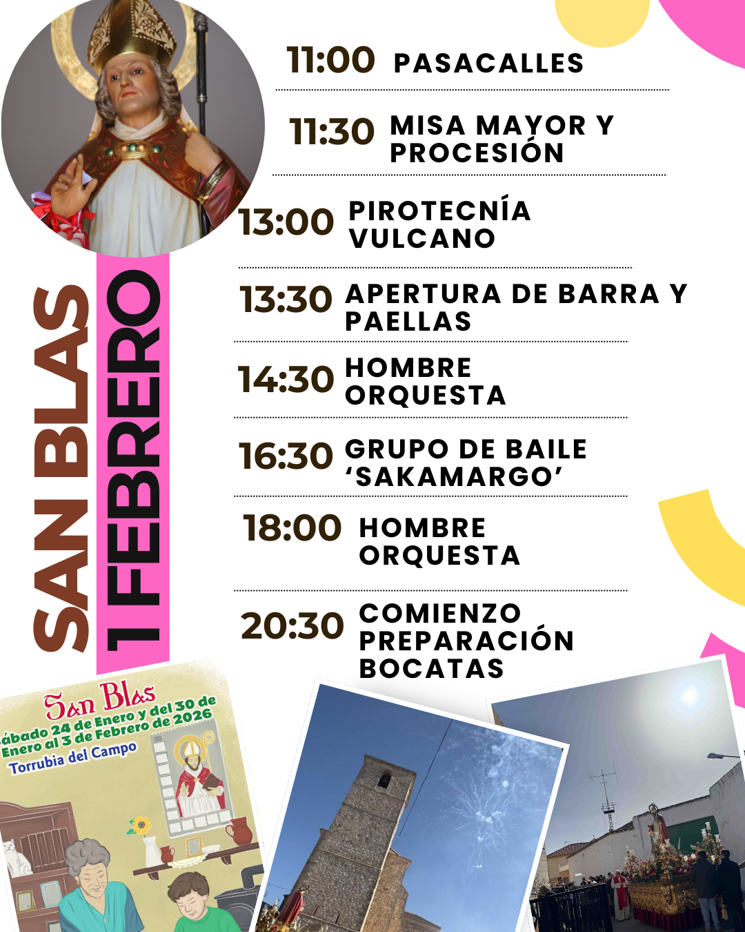Las fiestas de San Blas continúan hoy en Torrubia del Campo con una jornada marcada por los actos tradicionales y la convivencia vecinal. Pasacalles, misa y procesión, actividades musicales y propuestas gastronómicas llenan el programa de este día pensado para disfrutar en comunidad y mantener vivas las tradiciones locales.