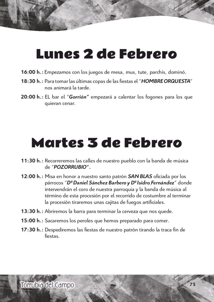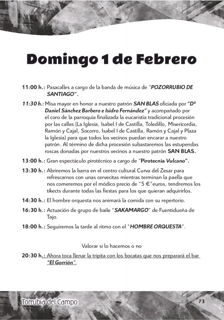 Programa de las Fiestas de San Blas 2026 organizado por la Comisión