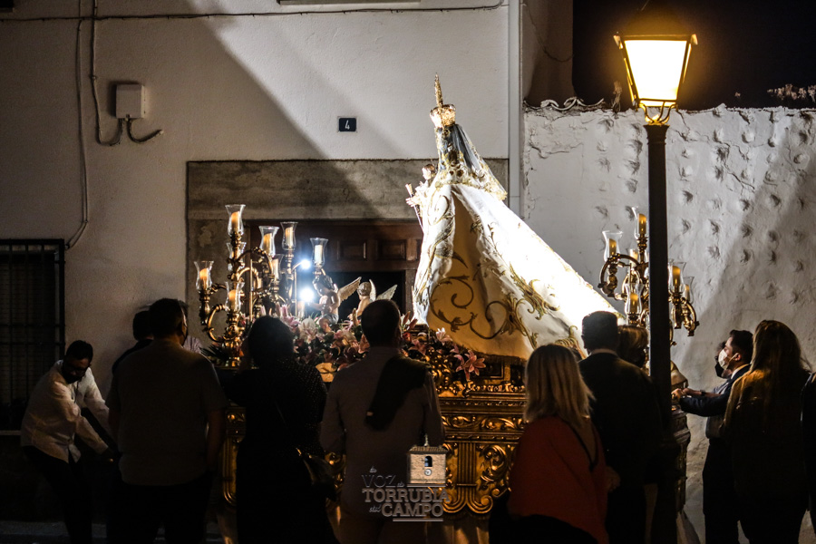 Ya por la tarde se realizaba la tradicional salida con la talla de Pio Molar por las calles de Torrubia. Numeroso público la acompañaba apostado en las puertas de las casas, calles y plazas cumpliendo con la normativa y la distancia de seguridad obligatoria. No faltaron los “encares” en este su recorrido tradicional. Antes de que la Virgen entrara a su templo se quemó un ramillete de fuegos artificiales.