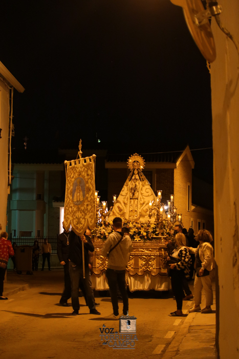 Un número escaso de músicos interpretaba los acordes del himno nacional a su salida por la Puerta del Sol. La Virgen salía acompañada por un número muy reducido de personas: miembros de la Comisión tirando de la carroza,, los fieles que ofrecieron la Procesión y detrás párroco y autoridades municipales a la debida distancia.