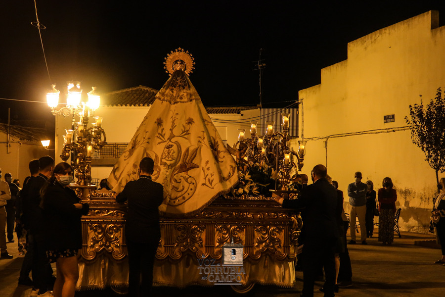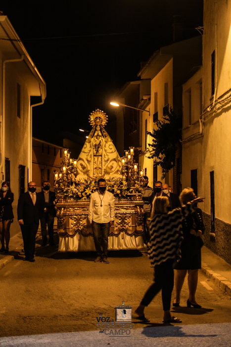 En su recorrido de costumbre la esperaban los primeros “encares” que este año dadas las circunstancias se pudieron hacer en este 29 de agosto. Los vecinos la esperaron en las puertas de sus casas, o en las aceras y en las bocas de calle. Sonaron los “Vivas” y los aplausos al verla pasar. Todo bajo la emoción de volver a ver a la Virgen ante una situacion dificil pero siempre cumpliendo todas las medidas de seguridad sanitaria. Al finalizar su recorrido la carroza se paró en la Plaza de la Iglesia donde se quemó un ramillete de fuegos artificiales.